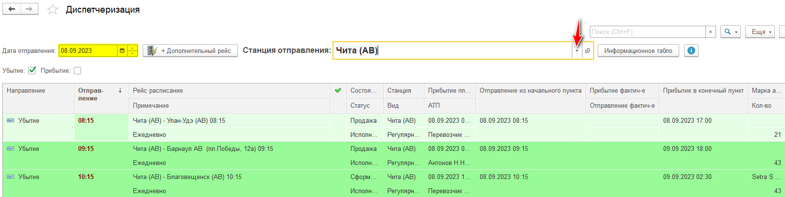Меню Автостанция - Диспетчеризация - Диспетчеризация
