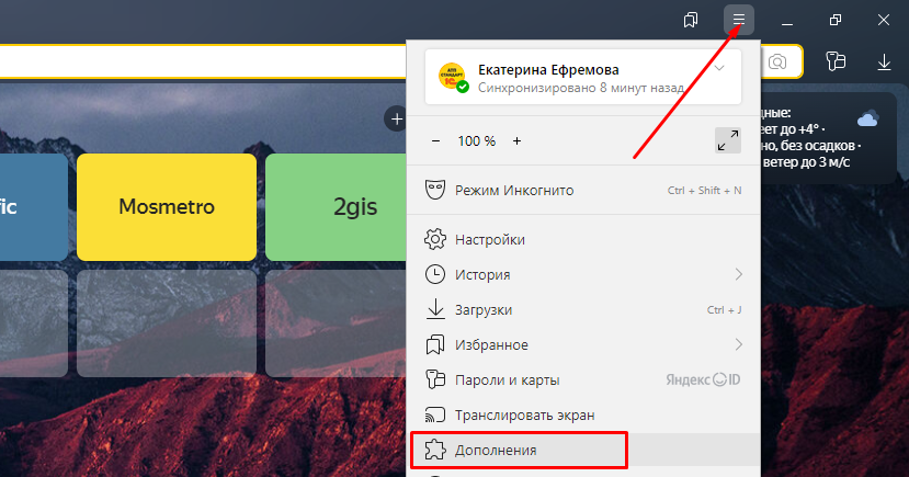 Нажмите кнопку "Добавить в Яндекс.Браузер"