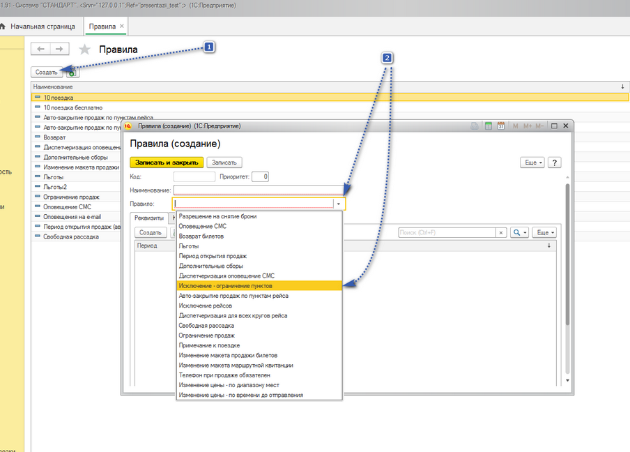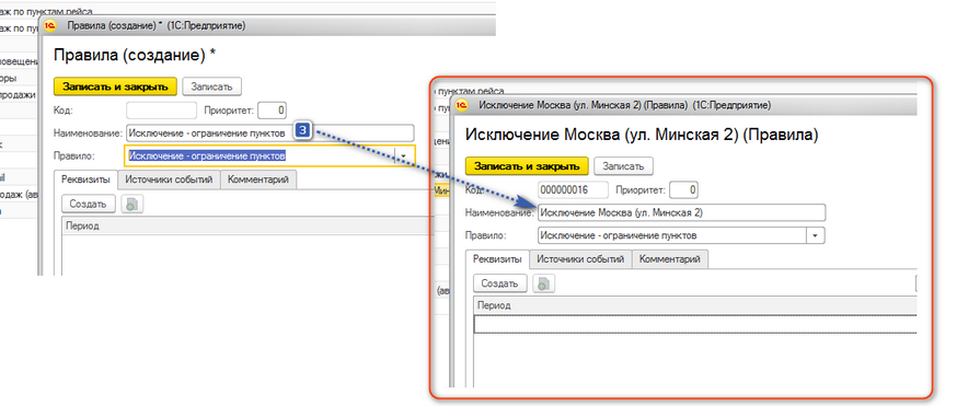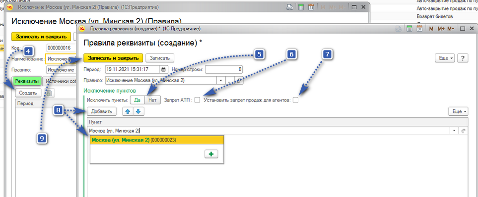 3. Название правила можно прописать произвольно. В примере нам нужно исключение из продаж пункта Москва (ул. Минская 2)