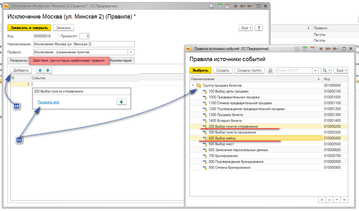 ВАЖНО: при закрытии продаж от определенного пункта для внешних агентов нужно выбрать "200 Выбор пункта отправления и 400 Выбор рейса.