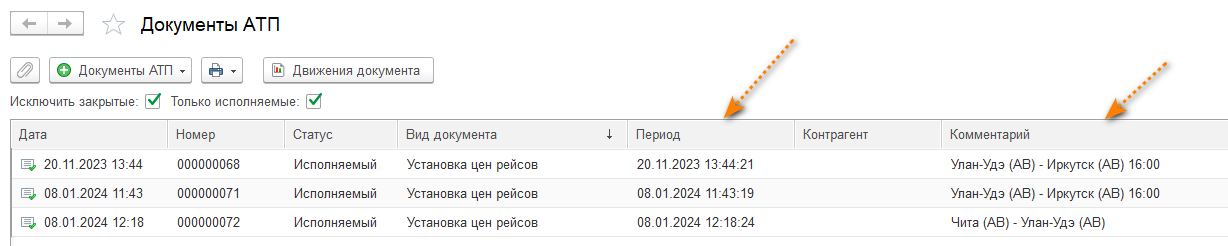 В данном списке Вы увидите период, с которого начинается применение тарифа и рейс, к которому применяется тариф.