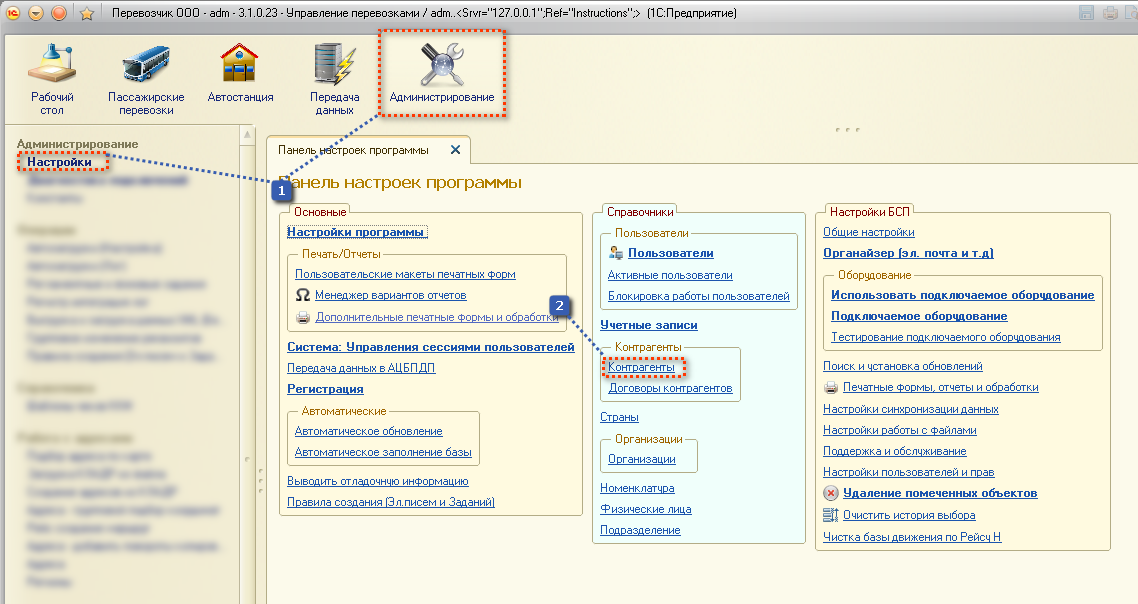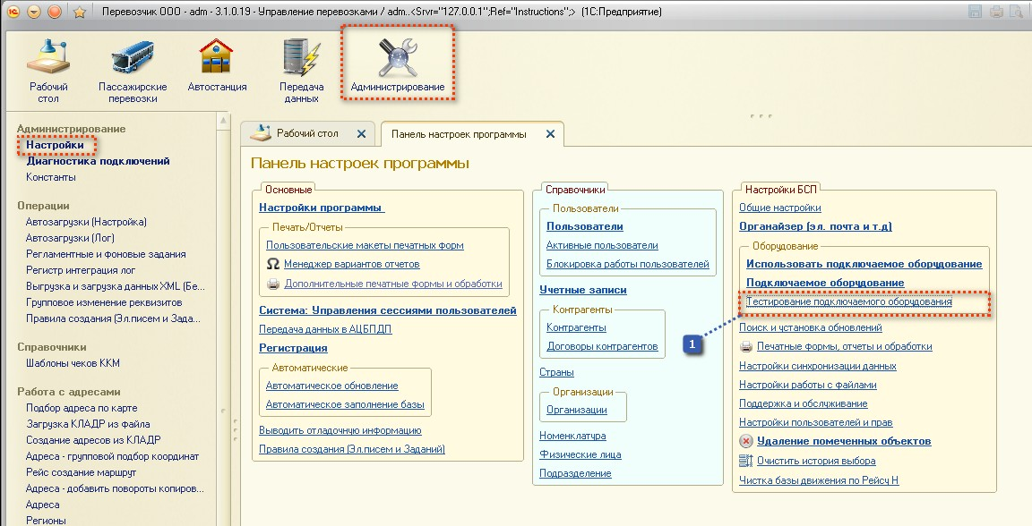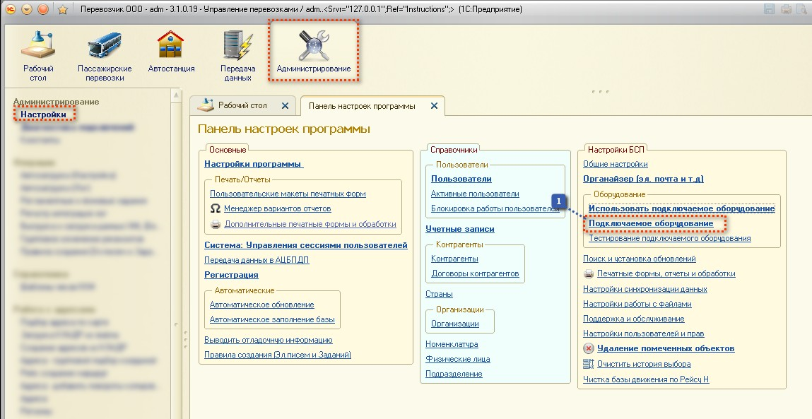 1) Заходим в "Администрирование" → "Настройки".