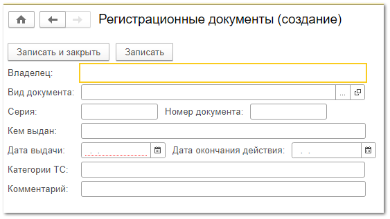 Заполните окошки регистрационными сведениями и нажмите Записать и закрыть.