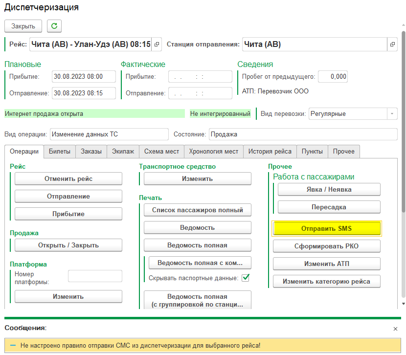 Пассажирам, купившим билеты на данный рейс могут быть разосланы информационные СМС.
