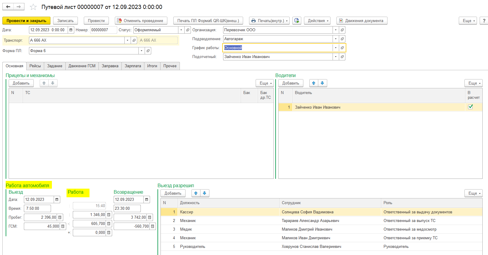 Путевой лист сформирован автоматически на основе ранее внесенных данных.