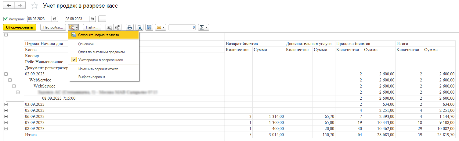 По проданным билетам Меню Автостанция - Отчеты - Продажа билетов по дате рейсов Можно выбрать вариант отчета. Укажите диапазон дат, нажмите кнопку Сформировать.