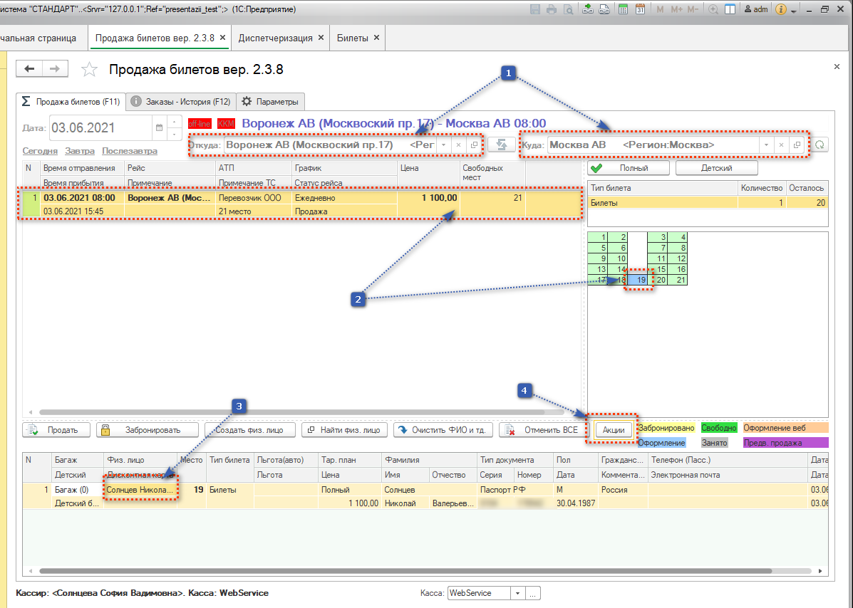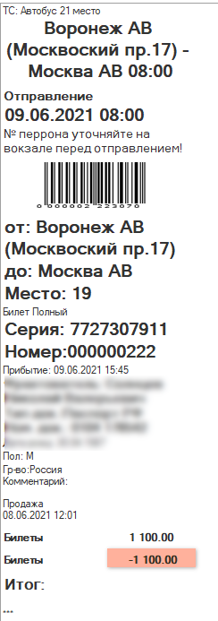 1. После переходим к оформлению билета, нажимаем продать, продаем и выходить чек, где указана скидка.