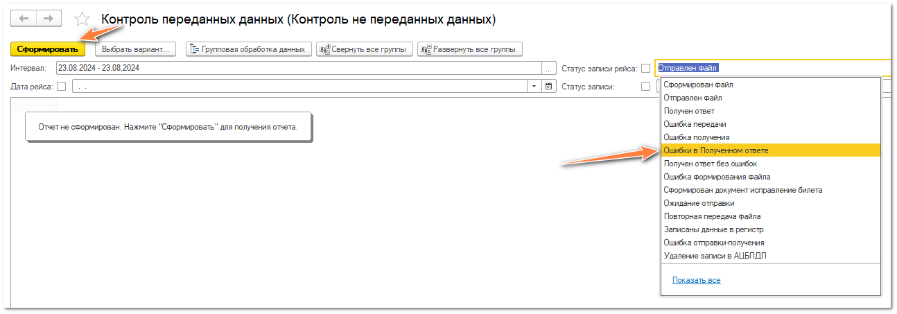Среди предложенных вариантов укажите - Ошибки в полученном ответе. Нажмите кнопку "Сформировать"