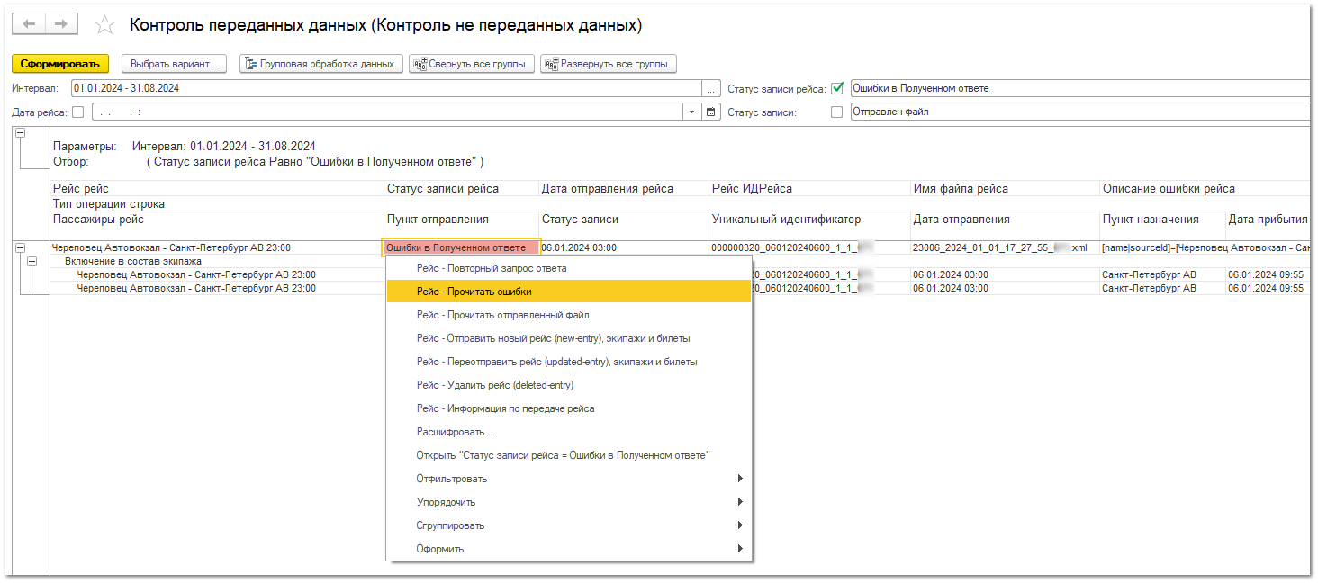 Щелкните ПКМ на красной ячейке - Ошибки в полученном ответе - Рейс. Прочитать ошибки.
