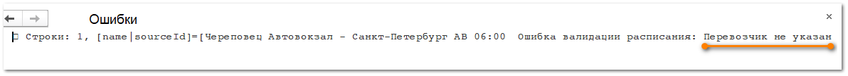 Откроется отдельное окно, в котором будет описание ошибки. В данном случае не указан перевозчик в рейсе.