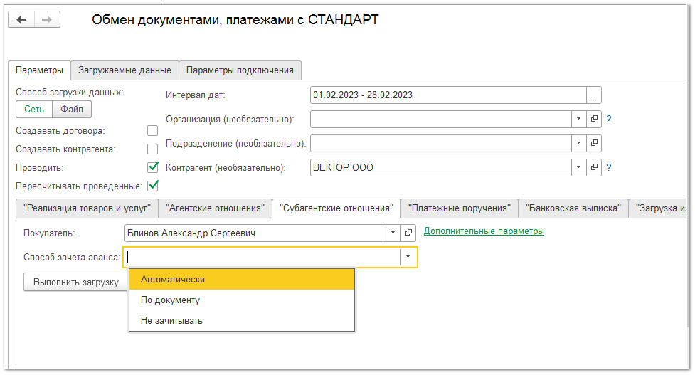 б) создавать контрагента - создает нового контрагента на основании данных из СТАНДАРТА