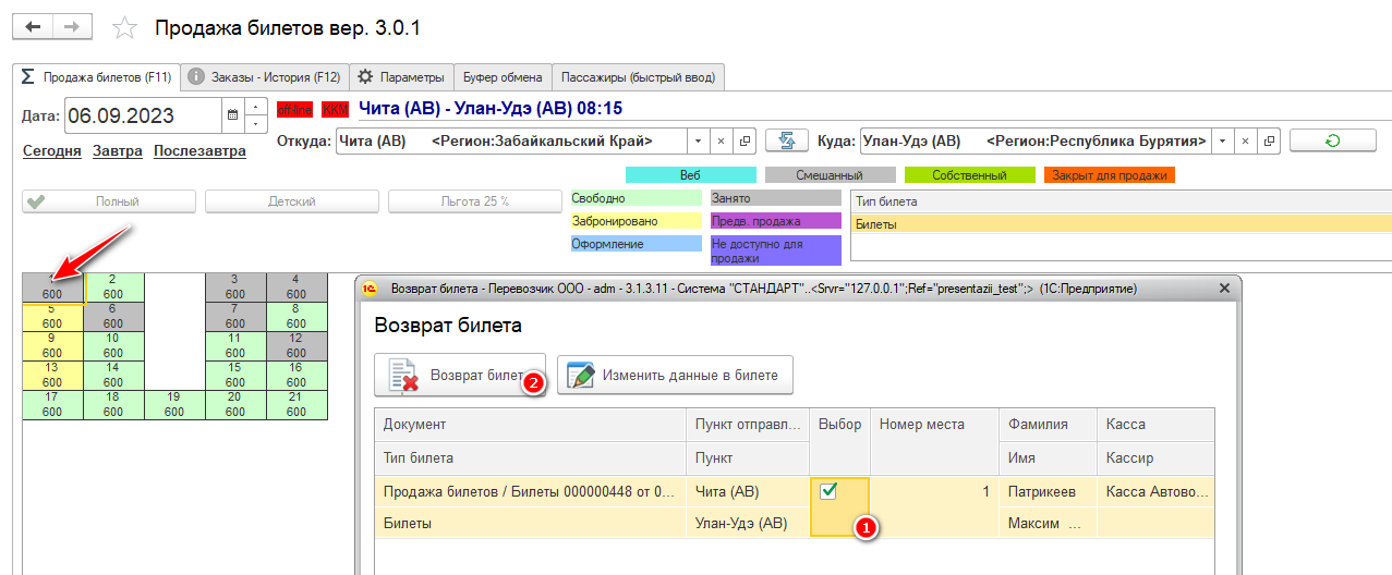 Выбираем проданное место двойным кликом.