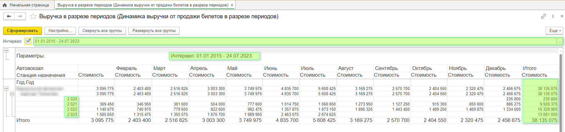 Отчет позволяет увидеть количество перевезенных пассажиров за заданный период времени, соответственно узнать выручку в разрезе данного периода и проследить динамику роста или падения пассажиропотока.